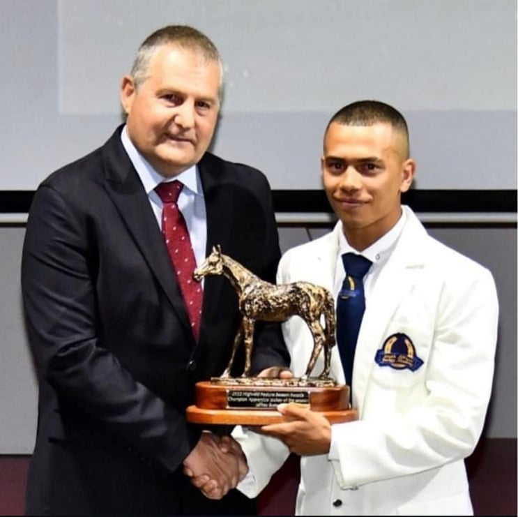 Above: With riding master Robert Moore: Highveld Champion Apprentice in 2022/23. (Image: supplied)