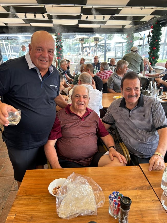Above: A recent photo of Raymond Abrosie and Budwa Abrosie (seated), with friend, Rocky Warby (image: supplied)